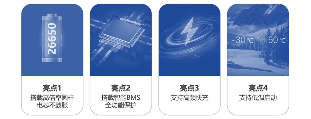摩托车启动电池 ODM 定制厂商 ODM 支持原厂定制 符合IEC、UL、PSE、UN38.3等锂电池安全标准10年经验沉淀,赢得全球众多国家消费者的认同 可按需进行定制开发提供一站式解决方案 型号 IFR26650-25D IFR26650-25B IFR26650-30B IFR 26650-33A 容量 标准 2500mAh 2500mAh 3000mAh 3300mAh 电压 标准 3.2V 3.2V 3.2V 3.2V 内阻 AC (1kHz) ≤6mΩ ≤6mΩ ≤10mΩ ≤20mΩ 持续充电电流 标准 1C 1C 1C 1C 最大 5C 5C 3C 2C 持续放电电流 标准 1C 1C 1C 1C 最大 30C 25C 10C 3C 最大放电 电流/时间 长脉冲 40C (<60s) 30C (<60s) 15C (<60s) 5C (<60s) 短脉冲 50C (<10s) 50C (<10s) 20C (<10s) 8C (<10s) 运行温度范围 充电 0℃ ~ 45℃ 放电 -30℃ ~ 60℃ 储存 -20℃ ~ 45℃ 充放电次数 (循环寿命) 100% DOD ≥3000 80% DOD ≥5000 60% DOD ≥8000 型号7Apro-DS7Amax-DS10Spro-DS7Aplus-DS10Splus-DS12Apro-DS12Aplus-DS电压12.8V12.8V12.8V12.8V12.8V容量2.5Ah5.0Ah6.0Ah7.5Ah9.0Ah功率32 Wh64 Wh77 Wh96 Wh115 Wh充电电流1.25 A2.50 A3.00 A3.75 A4.50 ACA150300180450270CCA(仪器值)8016090240135重量0.68KG1.04 KG1.06KG1.38KG1.40KGL*W*H150*87*93mm150*87*93mm150*87*93mm150*87*132mm150*87*132mm使用温度-20°C~60°C极性替代铅酸YTX7A-BSYTX7A-BSUTZ10S(MF)YTZ10SUTX9-BS(MF)YT12A-BSYT14A-BSUTX12-BS(MF)YTZ12SYTX12-BSYTZ14SYB12B-B2配套车型HONDAYAMAHAKAWASAKIDUCATI等HONDAYAMAHAKAWASAKIDUCATIHARLEY-DAVIDSONKTMTRIUMPHBMW等HARLEY-DAVIDSONKTMTRIUMPHBMW等 型号7A-DS12A-DS电压12.8V12.8V容量6.6Ah9.9Ah功率84 Wh127 Wh充电电流3.30 A4.95 ACA79.2118.8CCA(仪器值)NANA重量1.08KG1.42KGL*W*H150*87*93mm150*87*132mm使用温度-10°C~60°C极性替代铅酸YTX7A-BSUTZ10S(MF)YTZ10SUTX9-BS(MF)YT12A-BSYT14A-BSUTX12-BS(MF)YTZ12SYTX12-BSYTZ14SYB12B-B2配套车型HONDAYAMAHAKAWASAKIDUCATI豪爵大长江隆鑫宗申等HONDAYAMAHAKAWASAKIDUCATI豪爵大长江隆鑫宗申等 型号D-7Apro-DSD-7Amax-DSD-10Spro-DSD-12Amax-DS电压12.8V12.8V12.8V容量2.5Ah5.0Ah7.5Ah功率32 Wh64 Wh96 Wh充电电流1.25A2.50A3.75ACA150300450CCA(仪器值)88175263重量0.68KG1.04KG1.38KGL*W*H150*87*93mm150*87*93mm150*87*132mm使用温度-30°C~60°C极性替代铅酸YTX7A-BSYTX7A-BSUTZ10S(MF)YTZ10SUTX9-BS(MF)YT12A-BSYT14A-BSUTX12-BS(MF)YTZ12SYTX12-BSYTZ14SYB12B-B2配套车型HONDAYAMAHAKAWASAKIDUCATI等HONDAYAMAHAKAWASAKIDUCATIHARLEY-DAVIDSONKTMTRIUMPHBMW等HARLEY-DAVIDSONKTMTRIUMPHBMW等 支持原厂定制ODM 符合IEC、UL、PSE、UN38.3等锂电池安全标准10年经验沉淀,赢得全球众多国家消费者的认同 可按需进行定制开发提供一站式解决方案