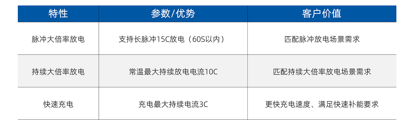 – 高倍率放电:支持连续10C放电、瞬时20C放电;