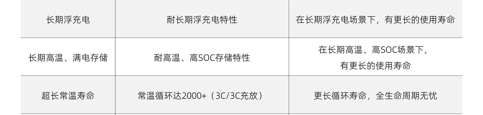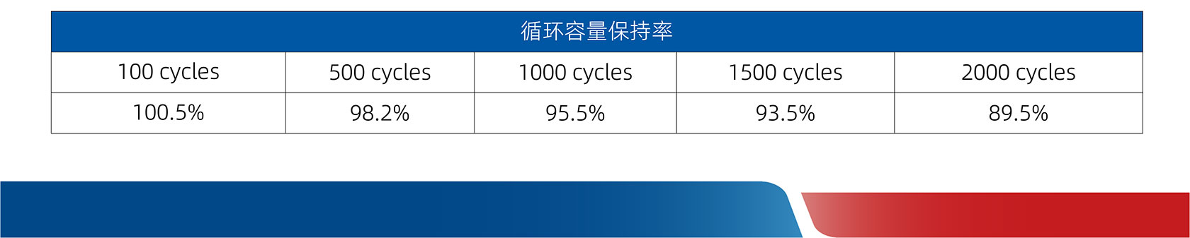 – 长寿命:+1C/-3C,100%DOD,循环2000次以上;